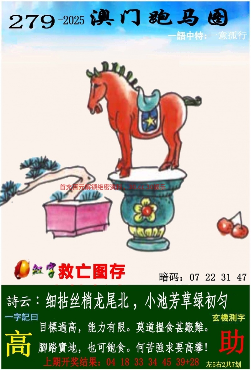 280期:开奖时间2025年10月07(星期二)晚9:30开(农历八月十六 鸡冲兔)